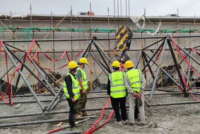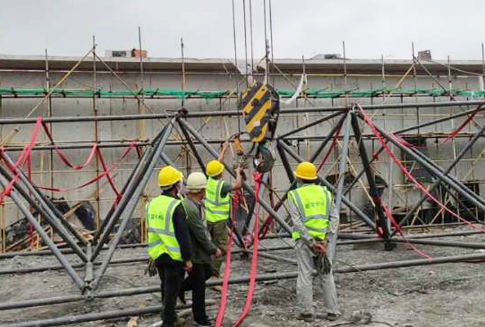 5、華亭煤礦網(wǎng)架工程網(wǎng)架安裝前應熟悉圖紙,了解施工工藝,弄清節(jié)點構(gòu)造,掌握節(jié)點構(gòu)造,掌握施工方法,注意安裝順序。